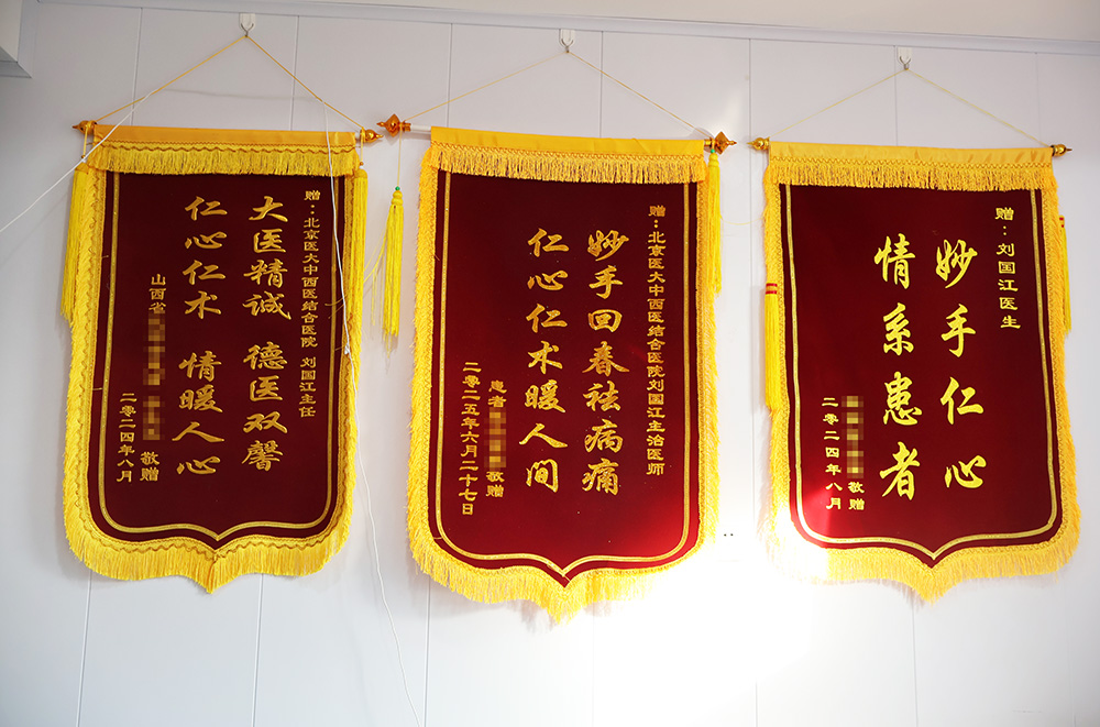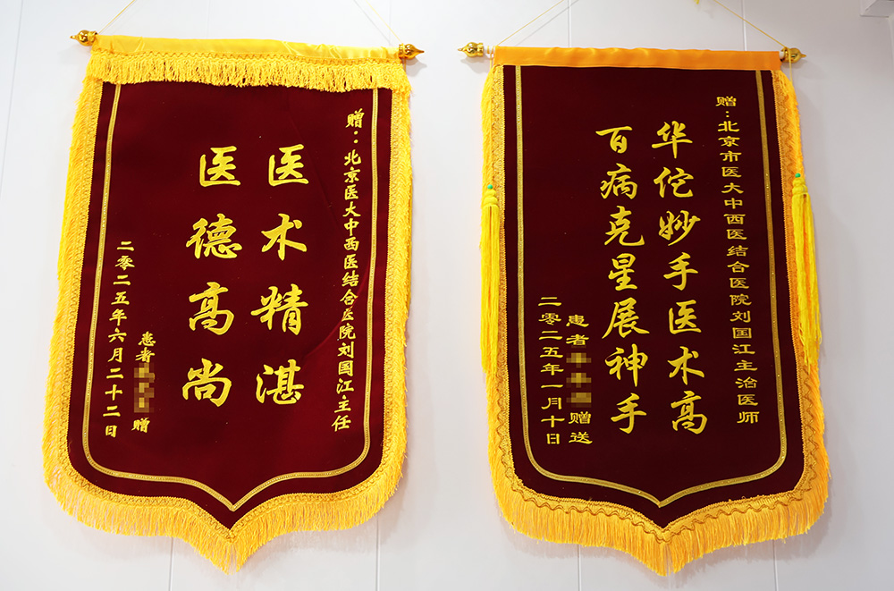 近日,北京医大中西医结合医院脑科刘国江主任再接锦旗赞誉!一面面锦旗,是患者的真情回馈,更是对我院脑科医疗技术与服务品质的高度认可。刘国江主任及脑科医护团队,他们用实际行动诠释了“以患者为中心”的服务理念,展现了医务人员的高尚品质和职业操守。