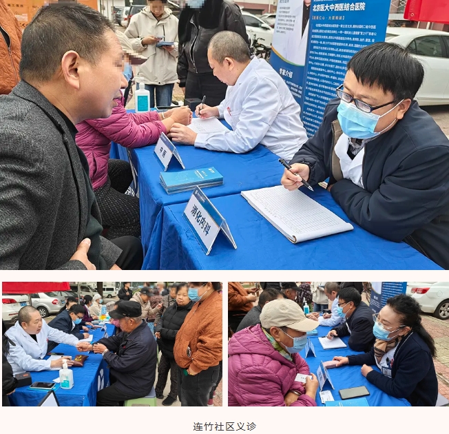 活动现场,北京医大中医科张美丽主任、李鑫然医生、韩东医生、消化内科滕庆山、口腔科徐璐等医护团队一起耐心细致地为前来问诊的群众解答疑问,免费为居民提供中医脉诊、血糖、血压检测,对老年人高发的高血压、高血脂、高血糖、心脑血管疾病、消化系统疾病、口腔问题等疾病的预防和保健进行了科普,并根据问诊居民的病情提供合理化的治疗建议和健康指导。义诊团队专业热情的服务受到了社区居民的广泛称赞。