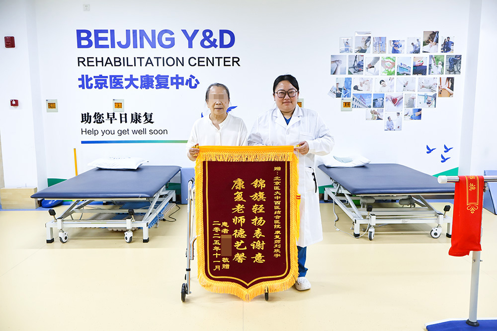2025年11月7日,初冬的北京已带寒意,但在北京医大中西医结合医院康复医学中心康复大厅内,却洋溢着一股暖流。来自河北省廊坊市的梅阿姨将一面写着“锦旗轻扬表谢意,康复老师德艺馨”字样、承载着无尽感激的锦旗,亲手送到了刘欣宇康复师的手中。这面鲜红的锦旗,不仅是对刘欣宇康复师个人专业能力与辛勤付出的高度褒奖,更是对北京医大康复医学中心全体医护人员精湛医术、优质服务以及医院“品质医疗、服务优良”理念的深切认可。